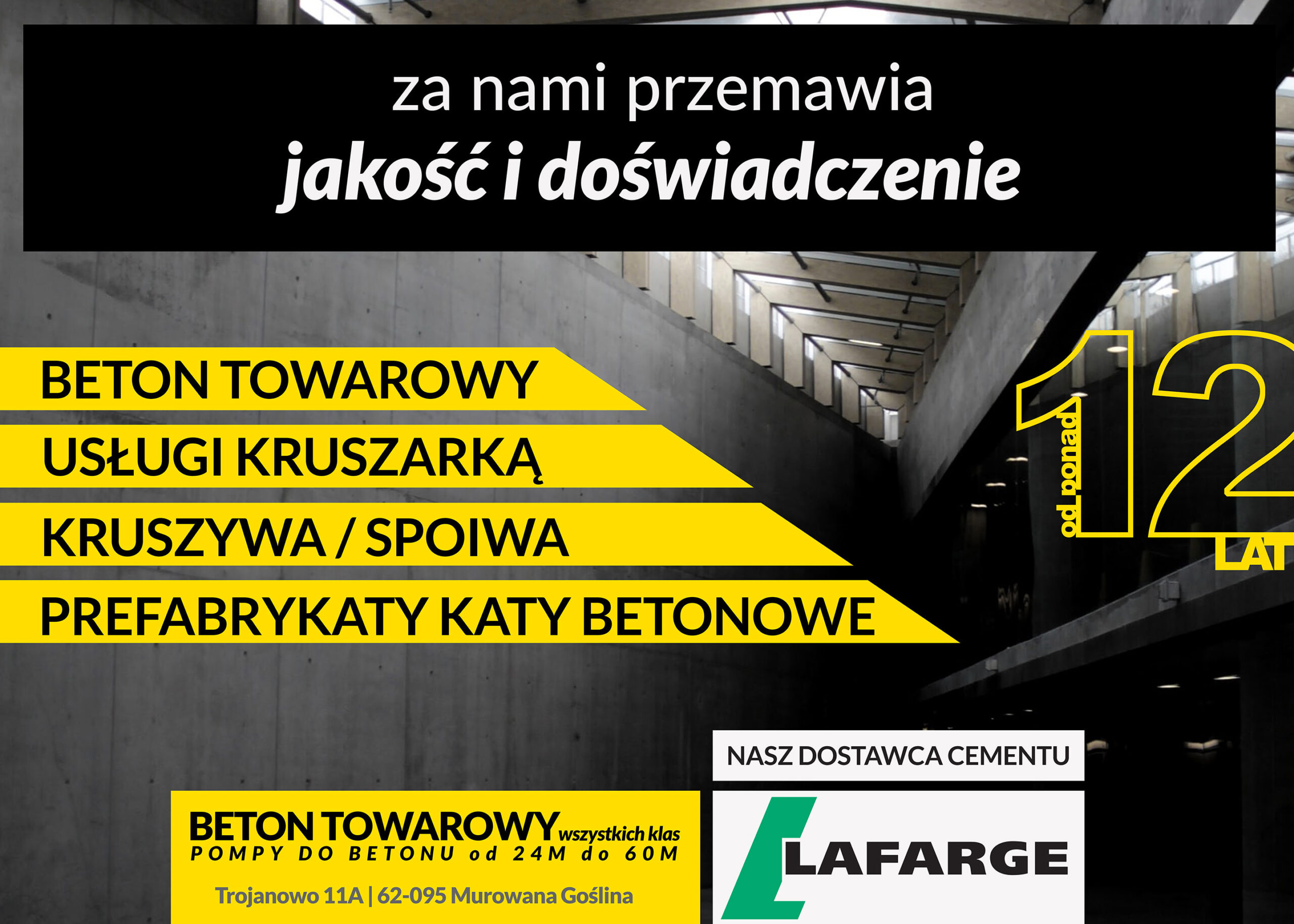Zadzwoń i sprawdź na kiedy możemy dostarczyć beton na Twoją budowę! 603-704-658 Beton nas fascynuje Od wielu lat specjalizujemy się w produkcji betonu. A firmę tworzy zgrany zespół ludzi, których celem jest produkcja najwyższej jakości beton, a następnie dostarczenie go na Twoją budowę, inwestycję. Realizujemy: budowy prywatneinwestycje gminne i regionalneinwestycje przemysłowe Nasze działania może zobaczyć na